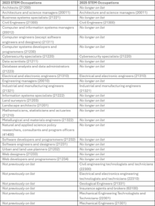 In particular, there are significant changes to the STEM category. The table below illustrates both the old and new occupational codes[1]: