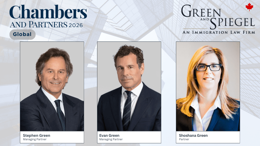 We are proud to announce that Green and Spiegel has been recognized as a Band 1 law firm for Immigration in the Chambers Global 2026 Guide. This prestigious ranking highlights our firm’s dedication to providing exceptional legal services, with Chambers specifically noting “What sets Green and Spiegel apart is its exceptional professionalism in delivering the best possible guidance. The team at Green and Spiegel is creative in its solutions and takes a client-focused approach.”