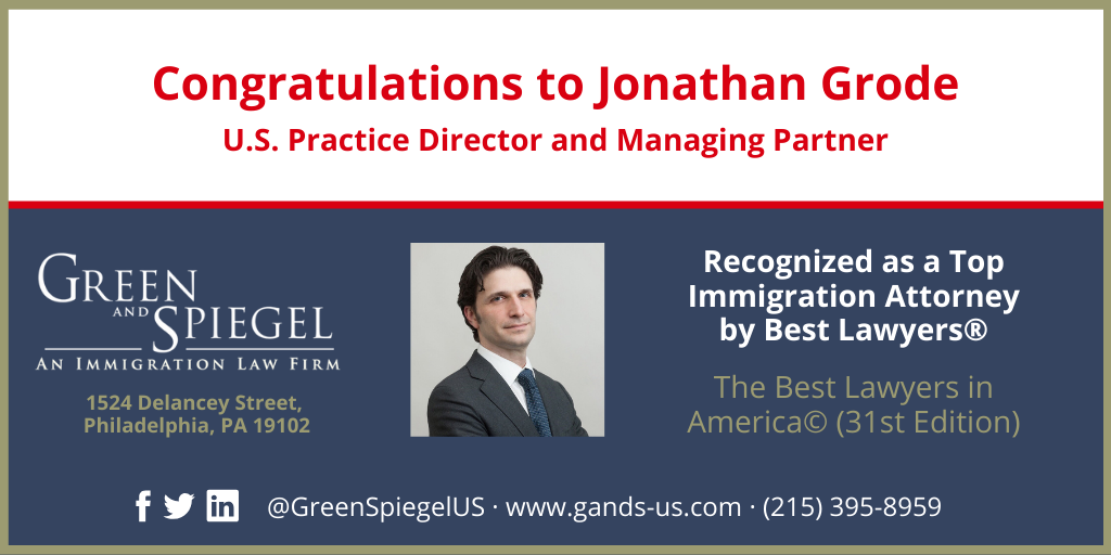 Green and Spiegel, U.S. congratulates Jonathan Grode, Practice Director and Managing Partner, who has been