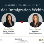 Cansu Aydemir is an Associate Lawyer at Green and Spiegel LLP in Toronto. Cansu assists individual and corporate clients with all aspects of immigration law in Canada, including business and visitor visa applications, work permits and work permit exemptions, work permit extensions, electronic travel authorizations, as well as applications for citizenship and permanent residence.
