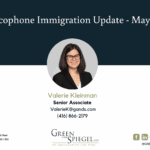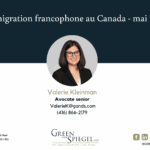 Valerie Kleinman is a Senior Associate at Green and Spiegel LLP in Toronto who specializes in Citizenship and Immigration law. Valerie has significant experience working on Canadian citizenship and immigration law matters in applications including: study permits, visitor visas, LMIA-based work permits, LMIA-exempt work permits, family class applications, Federal Skilled Worker and Canadian Experience Class applications through the Express Entry System, and Provincial Nominee Program applications. She works with clients on proof of citizenship and citizenship grant applications.